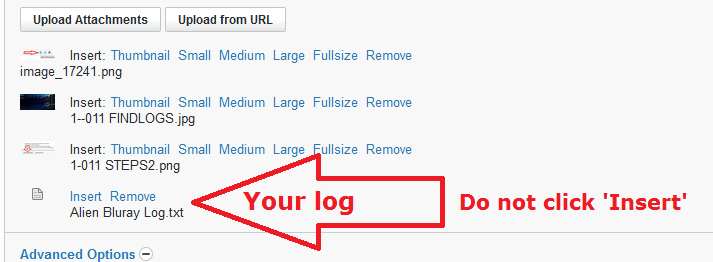 - It may take a few seconds for the attached log to appear in your post after you close the editor