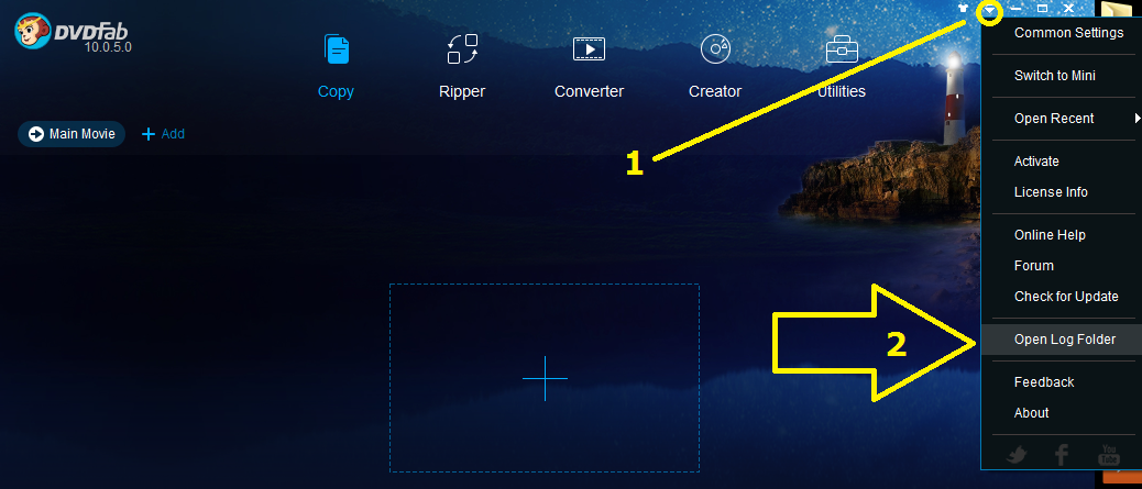 PLEASE NOTE: Logs can now be provided by using the Feedback option found in the Settings dropdown in DVDFab. If you use Feedback, make note of the Log ID number that will be provided. If you post in the forum about your problem be sure to include the Log ID number in the post. You can still provide logs in the forum as described below (doing both may provide a faster response).