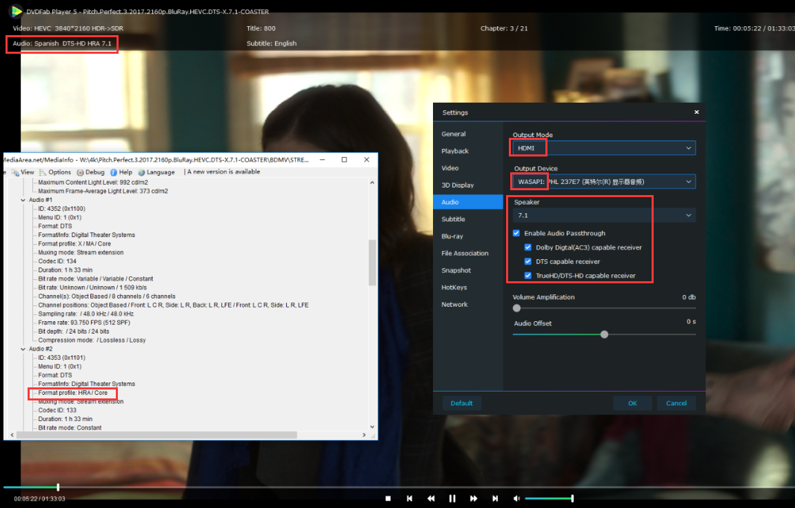 1. Please update to the latest DVDFab Player v5.0.1.9 to try again, be sure to adjust the audio settings to see if it will make a difference.