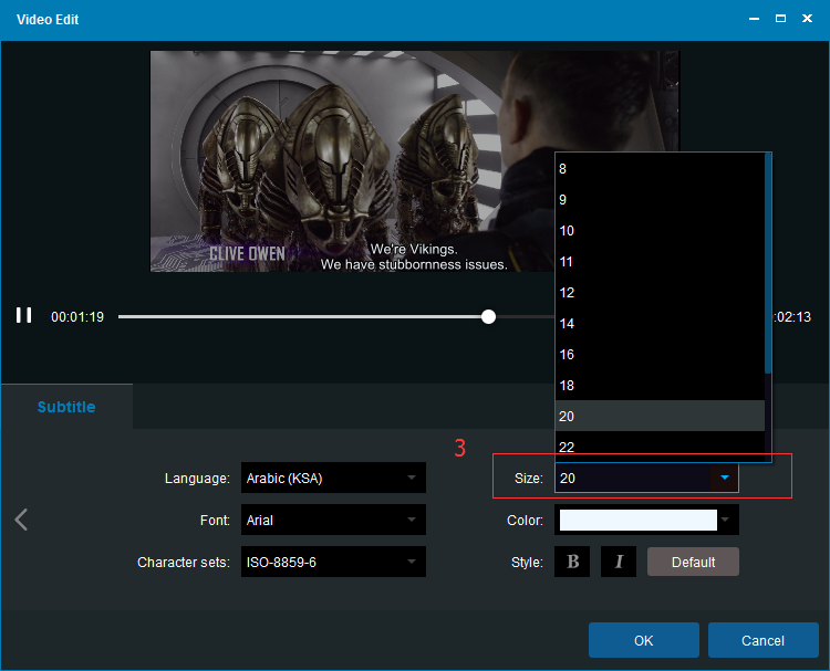 Please go to the subtitle settings window, set the subtitle position, and subtitle size before you start the process.