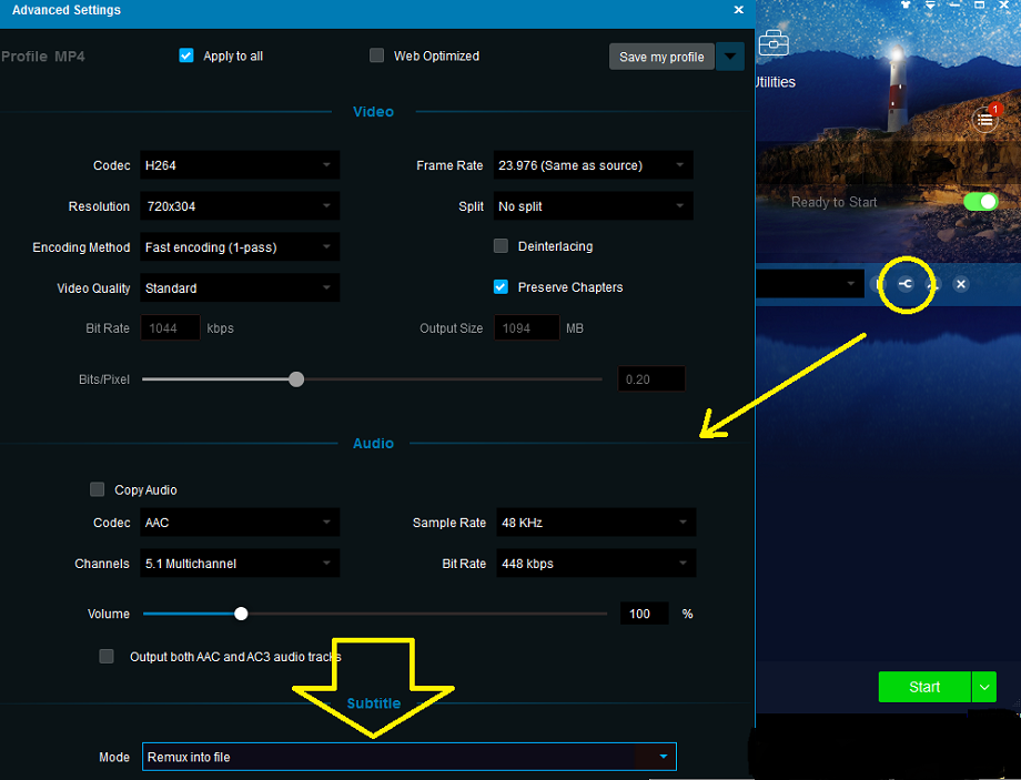 Goto encoder settings and change container to mp4/mkv, videocoder frame same as source or others codec choose, audio code passthrough(fastest)