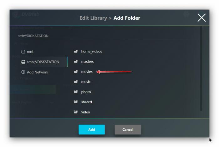 Or just click on add folder in that image avw611, and add the path to where your movies are on your NAS, Worked for me with various locations I have movies, I found this workaround after