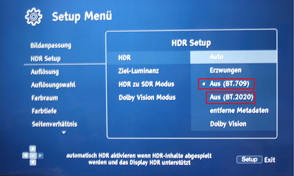 Sorry @ D300 das ich mich jetzt erst melde . Wenn ich beim Oppo 203 eine UHD mit DV abspiele das kann ich bei DV keine Änderung in der Farbeinstellung mehr vornehmen. Mein Sony TV UHD kann kein DV . Bei Clone BD kann man ein Harken setzten DV Entfernen. Ich mache keine MKV Remux , sondern mur ISO .
