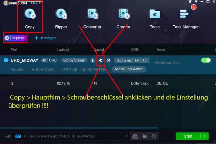 Es gibt Screenshot da es kein Problem gibt, ich wollte nur wissen was Copy und Klonen ist und wie die Qualität der Iso ist, im Gegensatz wenn ich den Hauptfilm mit Fab als Iso auf meine Festplatte Kopiere .