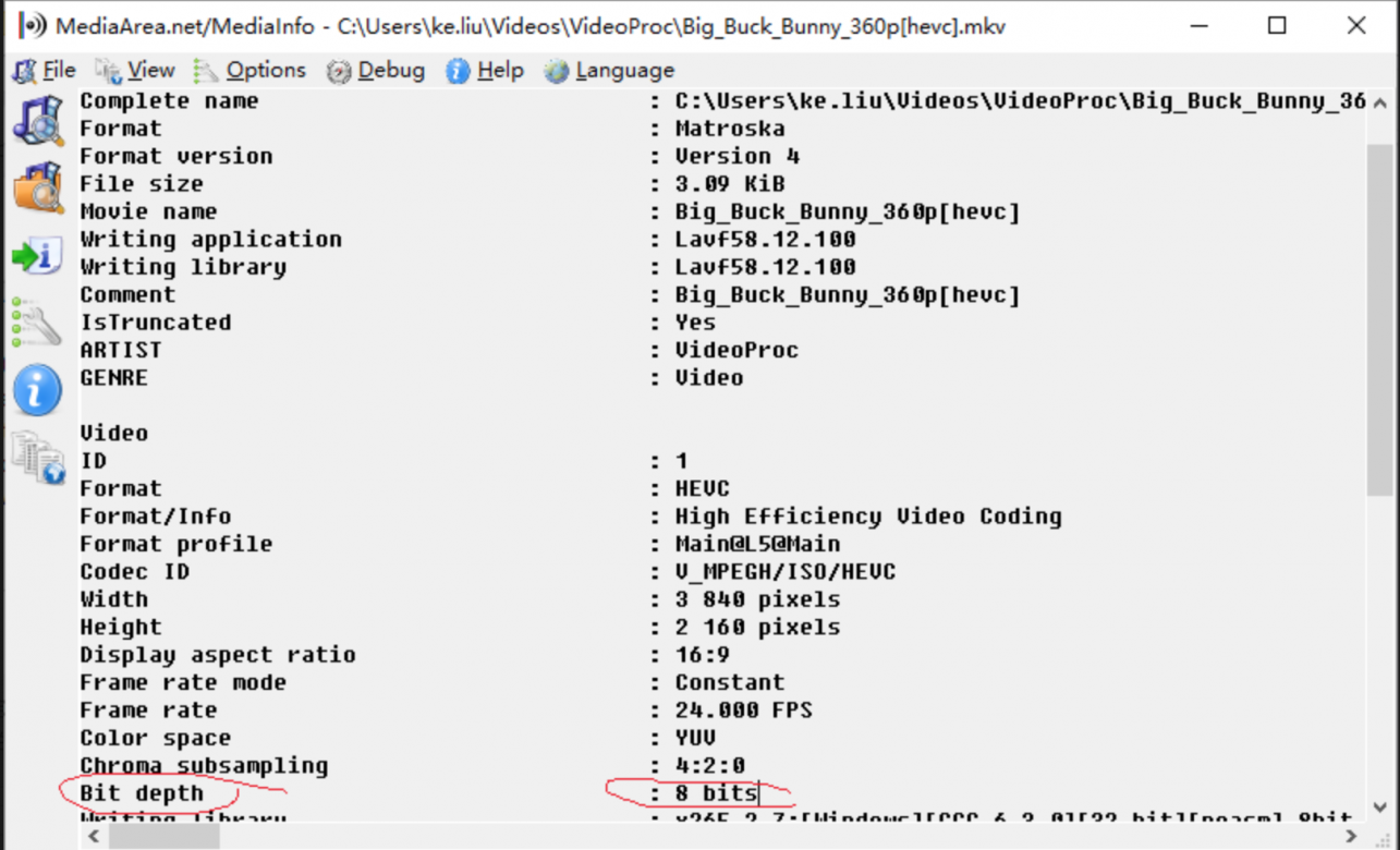 In the test, the VideoProc cannot produce mkv 4k 10bit hevc , and they may have some bug or misleading on showing the info, the output setting is different from what you set for DVDFab.