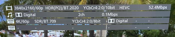 Movie: 3840x2160/60p HDR(PQ)/BT.2020 (this looks correct)
