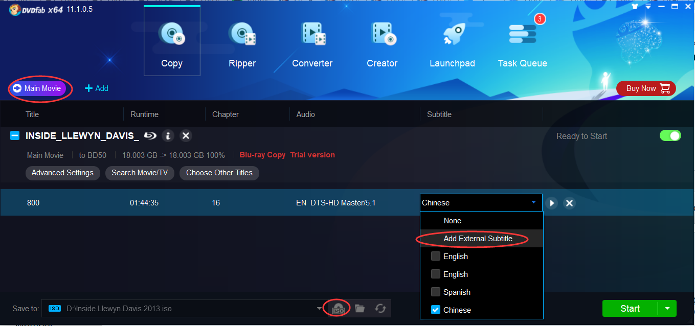Is it possible to save new subtitles to .iso version of movie?