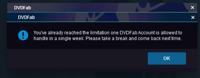 Received this error today; was not aware of any limitations on the number of discs that can be ripped on a weekly basis.