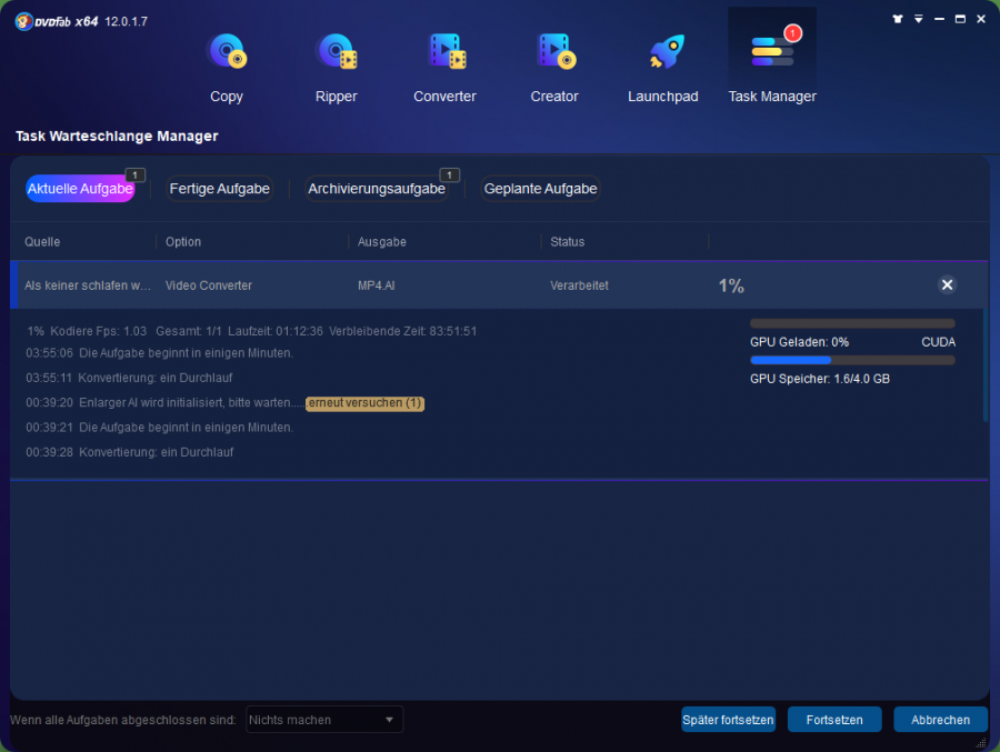 die geringste Chance habe.. hab soweit kein Problem mit BluRay, aber UHDs umrechnen oder gar den AI ... da brauchts wesentlich mehr Dampf.