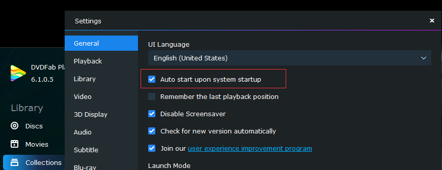 I too have noticed DVDFab Player Server.exe *32 shows individual entries in Windows Task Manager for every video I've played. DVDFab Media Player 6 is unchecked as shown in your picture above, and is unchecked in Windows "msconfig - startup" as well. Yet when I use Media Player 6, it stays in Task Manager as well as the server entries for every video as well. How do I get Media Player 6 to only start up when I want it to, and then completely shut down when I'm through with it? I either have to restart the computer each time I use Media Player 6 or stop each process in Task Manager individually. I don't like arbitrary things thinking they can run in the background all the time. I look forward to your reply. Thank you!