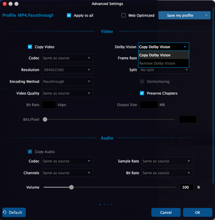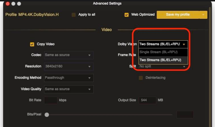 Luckily , I can afterwards select "copy video" and still choose Dolby Vision Single Stream.