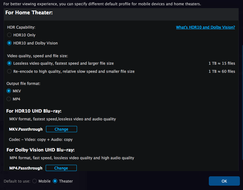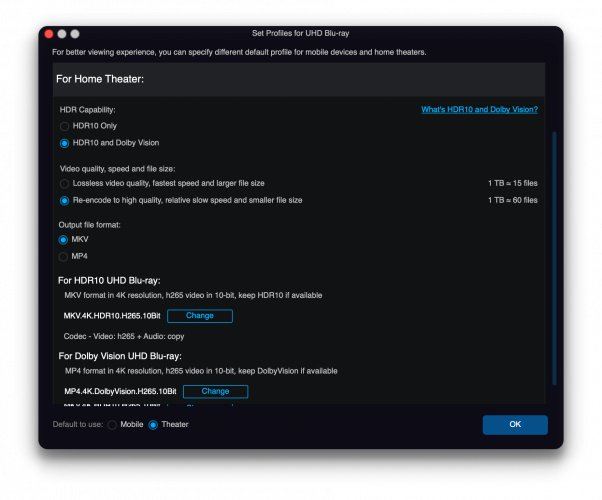 In both DVDFab 11 and 12, when ripping a UHD Blu-Ray, only the 3 passthrough profiles are available, plus Mobile and Theater.