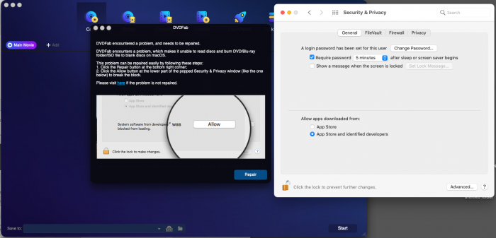 I think I might be onto something.  I changed the startup disk security settings on my Macbook Air and changed from Full Security to Reduced Security.  I then checked BOTH of the options for extensions - Allow User Management and Allow Remote Management.  (I tried just checking the first, but it still didn't work.)  After rebooting, I then loaded a disc with DVDFab closed.  If it was open, it would lock with DVD Player trying to grab the disc at the same time that DVDFab tried to read it.  After DVD Player automatically opened, I closed it, then opened DVDFab.  At this point, it read the disc and was able to process.  I'm still testing, but so far, so good...