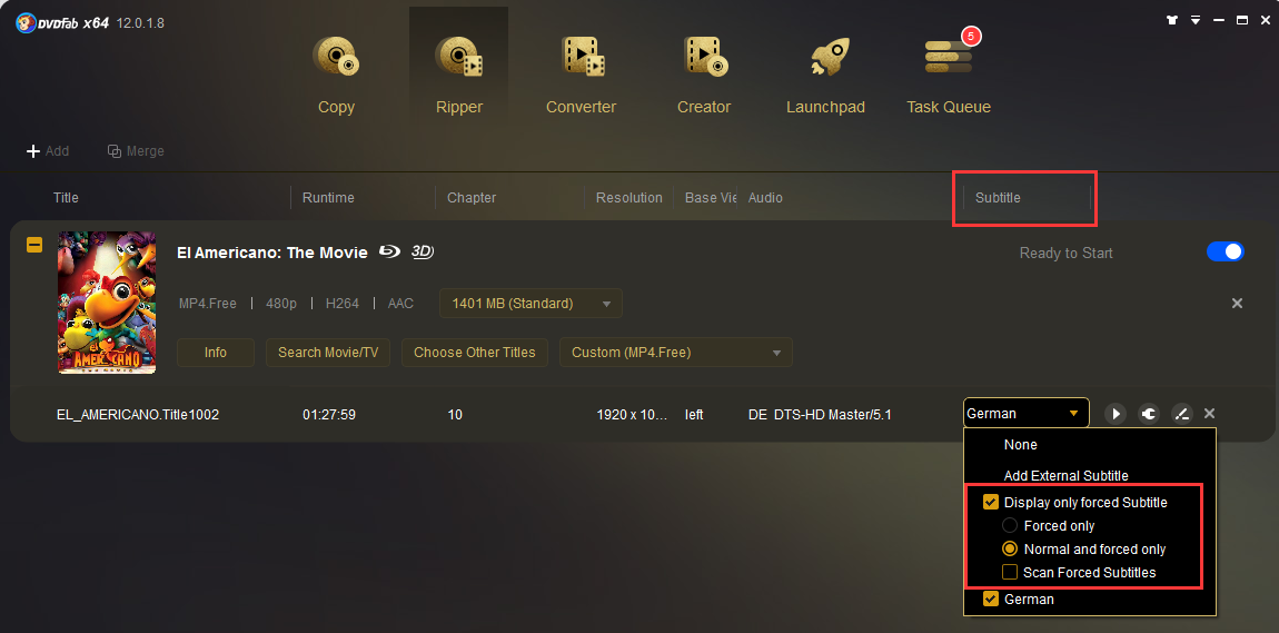 There is a Forced Subtitle option under the Subtitle tab. You can preview to find out which subtitle stream contains the forced subtitle you need and choose how you want the subtitles, after that, pick the subtitle mode in the Advanced Settings, if you choose Render, you shall always have the subtitles shown when playback.
