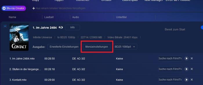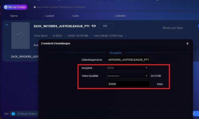 Wer eine Datei mp4, mkv, m2ts ... usw. umwandeln möchte um die Blu-ray auf einen BD-25 Rohling zu brennen.