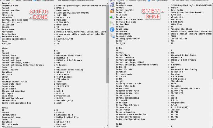 - What makes it such that S11E11, with what APPEARS to be the same video characteristics before processing, needs to have video re-encoded, rather than re-muxed like S11E10.