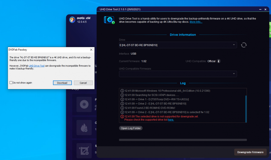 2021.09.14-10:39:45: The selected drive is not supported for downgrade yet.