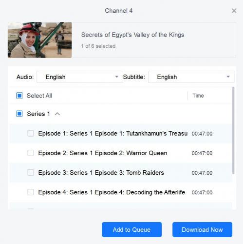 "Secrets of Egypt's Valley of the Kings" is another title where the audio downloaded is English audio descriptive, rather than just English.