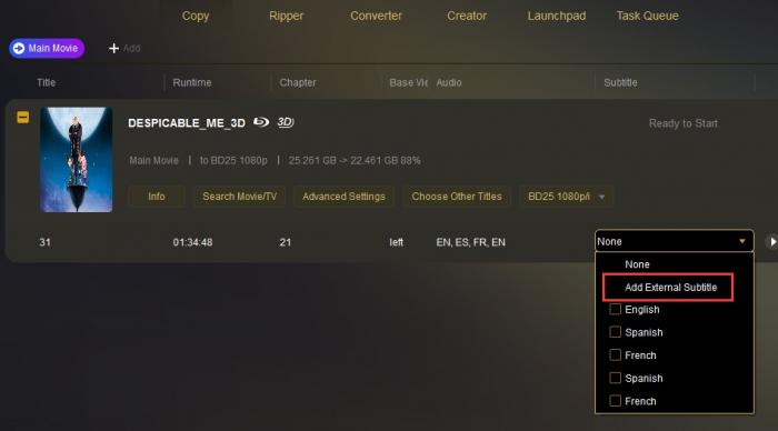 Winman42 I haven't been able to figure this out. I have a german blu-ray that doesn't contain english subs. I have downloaded an english subtitle file. How can I add it to this disc when I copy it?thanksWin