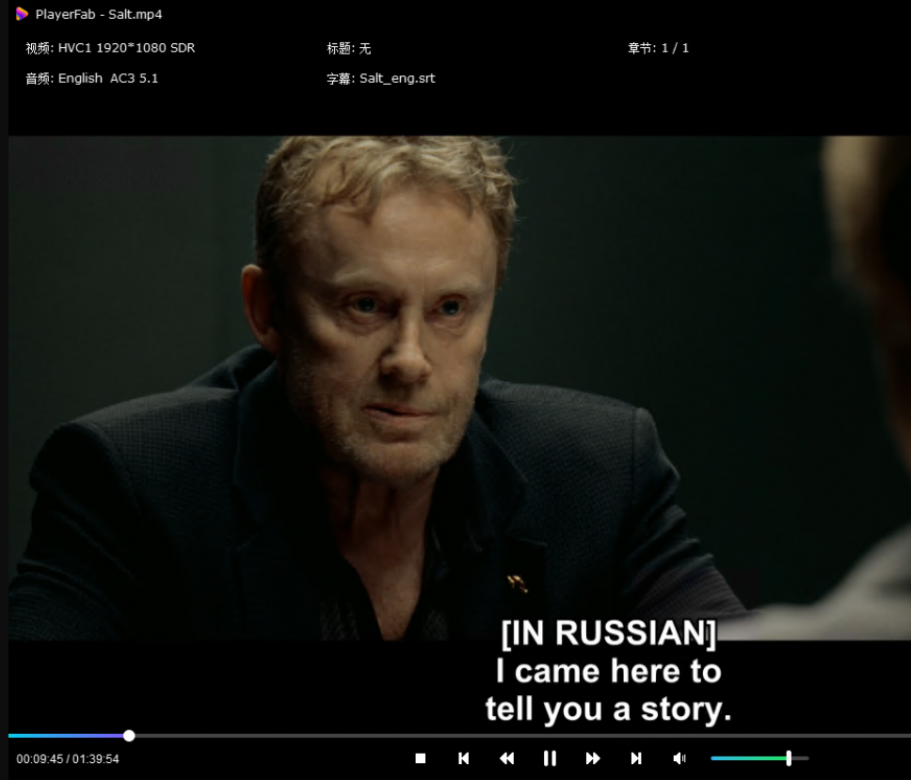 Correct. There is ONE English subtitle which I can select in StreamFab and download. And yes it does show the English text for the Russian conversation at 9:41.