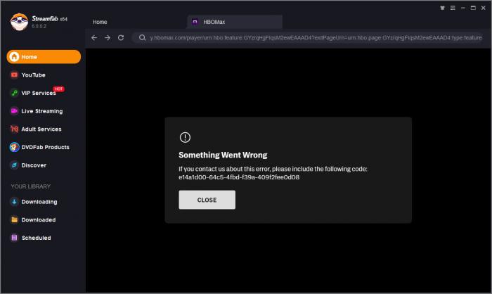 5. Wait 10 minutes (sometimes you have to, sometimes you don't - like just now when I got that "Something Went Wrong", I didn't wait and was able to download from HBO Max downloader with StreamFab immediately)