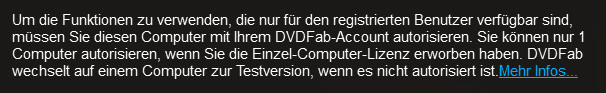 ansonsten ist es wieder ne Testversion, das nervt echt! Ich bin exakt nach Vorgabe vorgegangen: 1. Starten Sie Photo Enhancer AI, nachdem Sie es auf Ihrem Computer installiert haben; 2. Klicken Sie auf "Autorisieren" in der rechten, oberen Ecke der Hauptoberfläche; 3. Geben Sie im Popup Fenster Ihre registrierte E-Mail und das Passwort des DVDFab Benutzerzentrum ein; 4. Klicken Sie auf "Autorisieren"