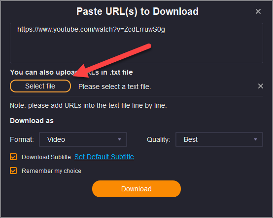 october262 How can I pull up the dialog box to add the text file.Do I need to copy and paste a generic youtube url?TIAbeamersee post #4 - https://forum.dvdfab.cn/forum/software-support-english/youtube-to-mp3-youtube-video-downloader/418360-you-tube-command-line-api#post418381 the command line is currently not supported