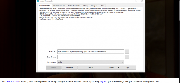 Access to CBS.com is governed by being a user of a cable TV provider so ytp-dlp needs the appropriate options added. Tubedigger also needs cable TV info added. In the case of yt-dlp it would be these options -