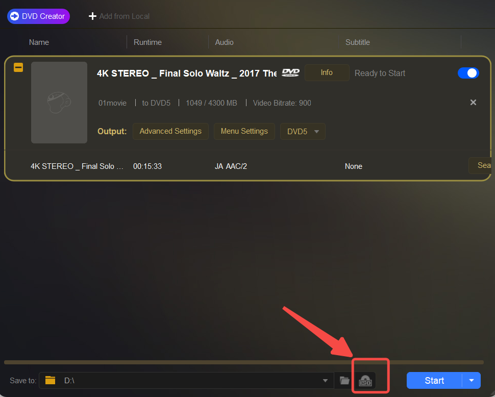 Creator only takes video files as sources. ISO source and MP3 source are not supported.