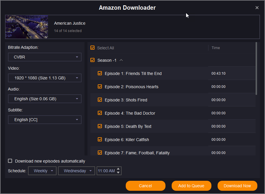 Oh wait. So when you go to American Justice and select Season 15, the SF Amazon Downoader only shows you the episodes for that one season? And shows the 15 as "Season -1"