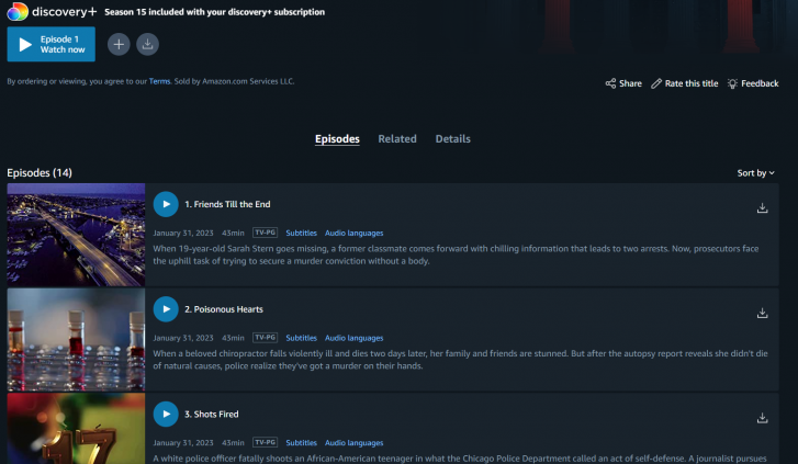 I don't have access to the Seasons from A&E Crime. Discovery+ only has Season 15. I was missing some episodes from Season 15 anyway so it's fine for me and it's in H265.