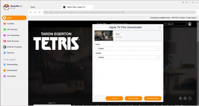 With AppleTV I never get an option for video on anything I try to download. The only options I get are "audio" and "subtitle". And when I click download just to see, it downloads in 360p.