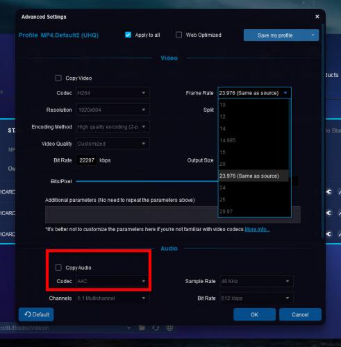 I have been toggling that on and off, but I get no sound, with the Copy Audio selected. That includes both DVD and Blu-ray.