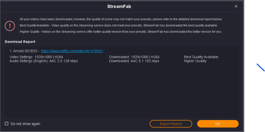 "Videos on the streaming service offer better quality than your presets, StreamFab had downloaded the better version for you."