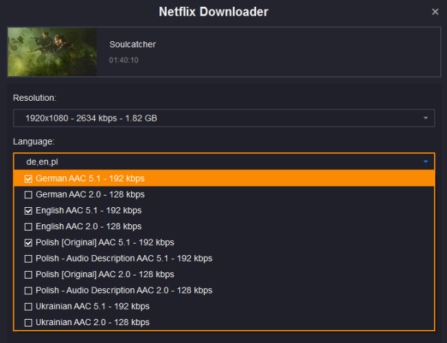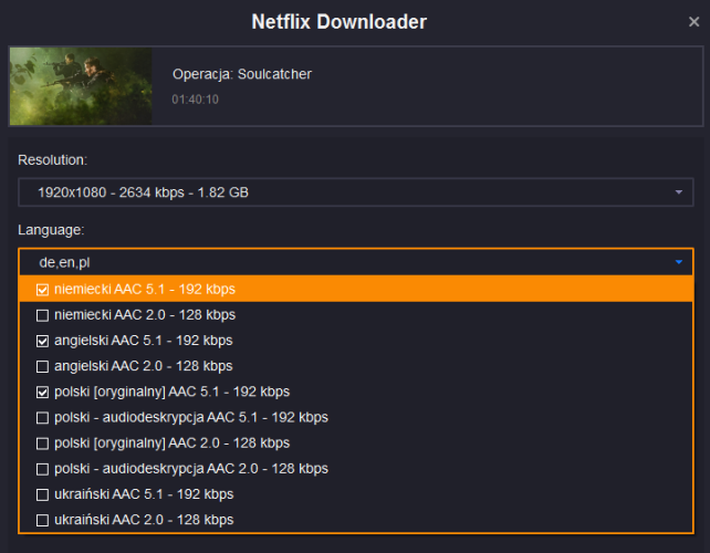 (BUG 10) when, for a particular episode in a series, an audio language chosen does not exist, a random audio track gets downloaded in its place (tagged correctly in mp4) ('Chicago Med' season 5 episodes, instead of German audio track: s05e02 (Spanish), s05e03 (Portugese), s05e06 (Italian), s05e12 (French) and others)