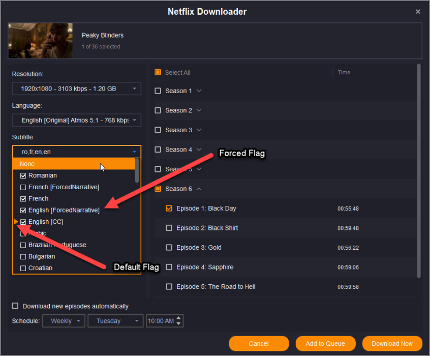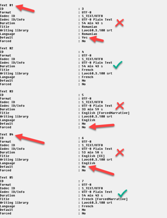 - If there are more than 1 audio track, the [ForcedNarrative] track that is the same language as the audio track with the orange triangle should be set as forced