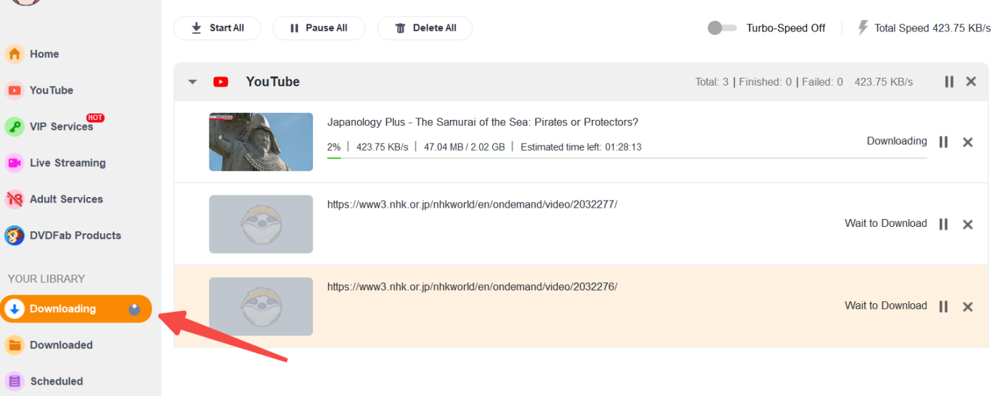 dlzh How do I add a single file to the download queue so that it is not in "download now" mode?When I go to a URL and wait for StreamFab to scan the page, it presents me with only a "Download Now" button. I want the "Add to Queue" button; however, it is missing.If I use the "Download Now" button on multiple pages and pause the queue, then when I restart it, it tries to download all of them at once. Is there a way for me to download one file at a time and add multiple links to a queue?For my specific questions above, I was attempting to add the following links to my download queue.- https://www3.nhk.or.jp/nhkworld/en/ondemand/video/2032278/- https://www3.nhk.or.jp/nhkworld/en/ondemand/video/2032277/- https://www3.nhk.or.jp/nhkworld/en/ondemand/video/2032276/