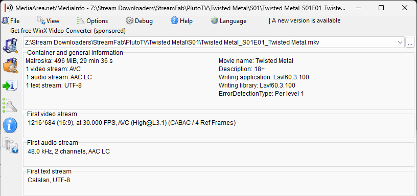For the subtitles, it seems that it was English (Canada) and StreamFab set the language code to CA instead of the country code so they show up as Catalan but they are in English.
