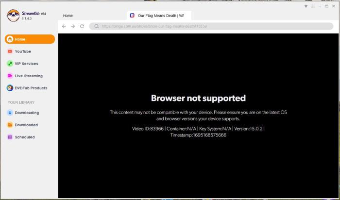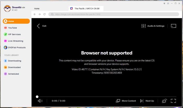 I've been fighting the urge to write this for 9 days now and I can't hold back much longer. Mona, don't you ever look to see if a streaming site is even supported by StreamFab? I'll break the news to you, foxtel.com, binge.com.au, and kayosports.com.au are not listed as either supported in MPD or M3U8. And obviously they are not VIP. I know that honesty is not one of DVDFab's strong points but you should make it clear in the advertisements you bombard everyone with that StreamFab can NOT download from every streaming sites in the world. Keeping mum gets you in situations like this.