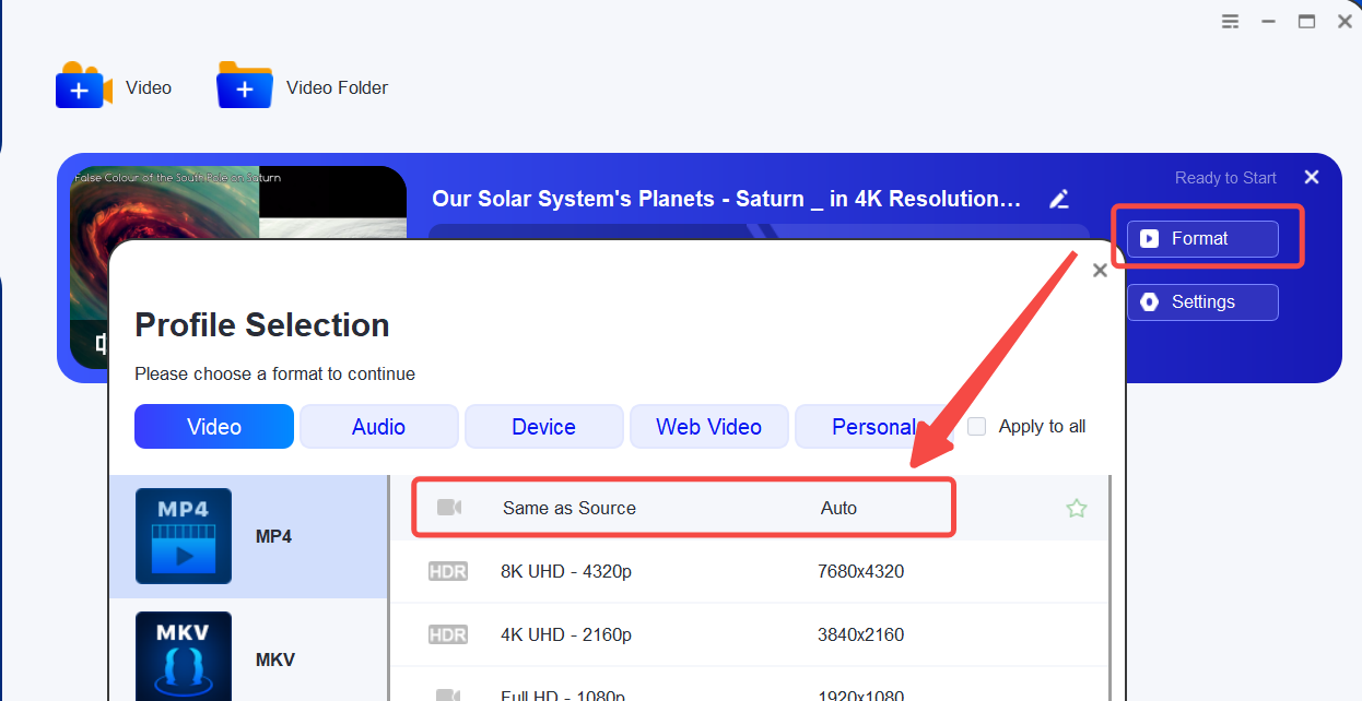 Mona, the problem with using the Same as Source profile is that in this flawed product, it does NOT use the Same as Source for video quality! It SHOULD (that is what Passthrough does in Ripper), but it does not.