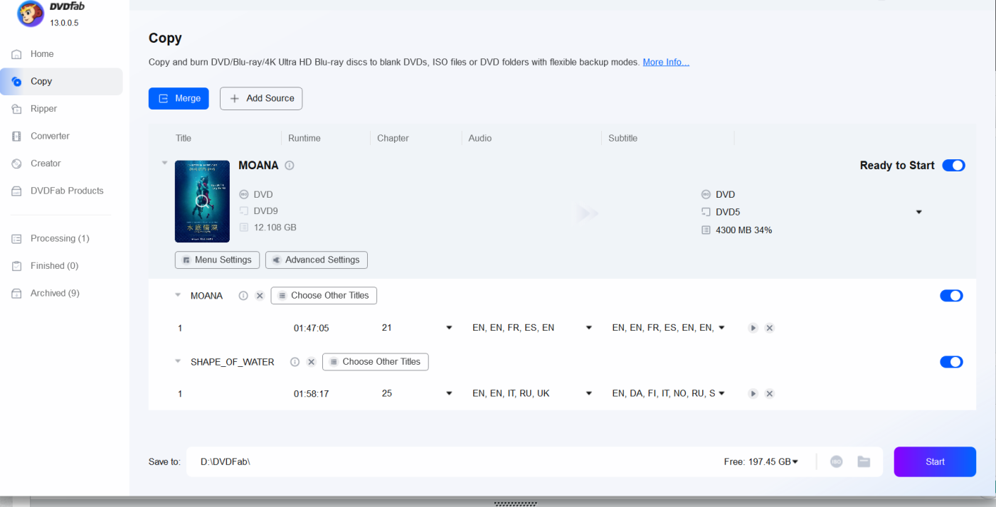 this worked for me - 1st i used the movie Gettysburg dvd, copied both side A and side B using main movie only copy