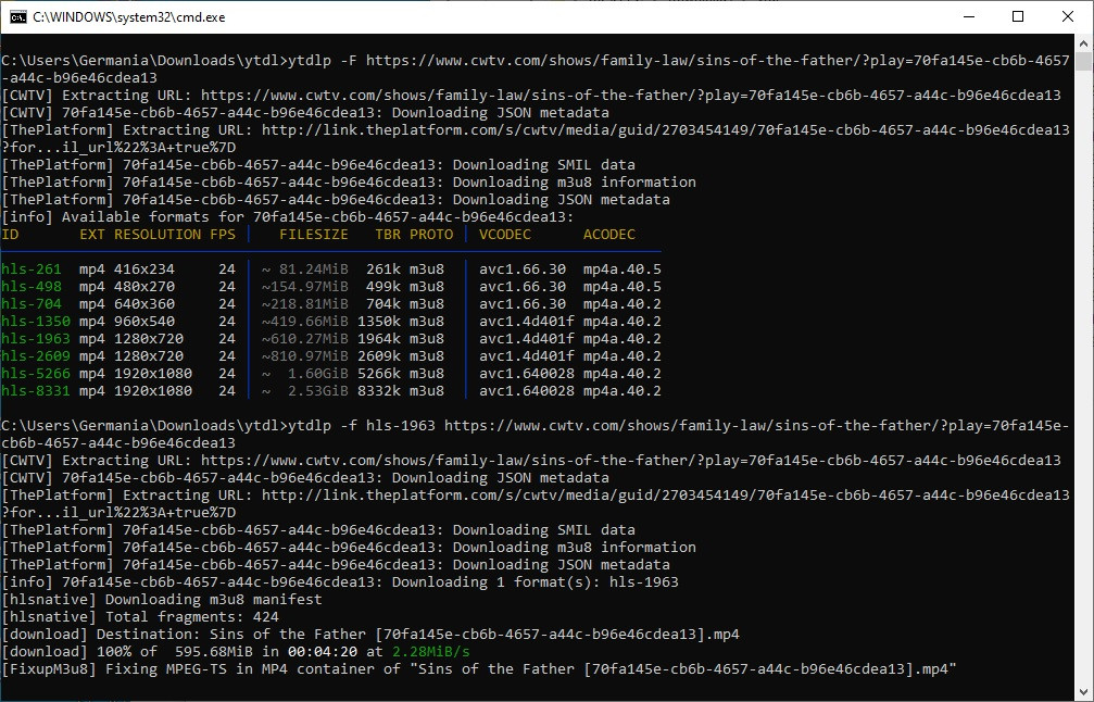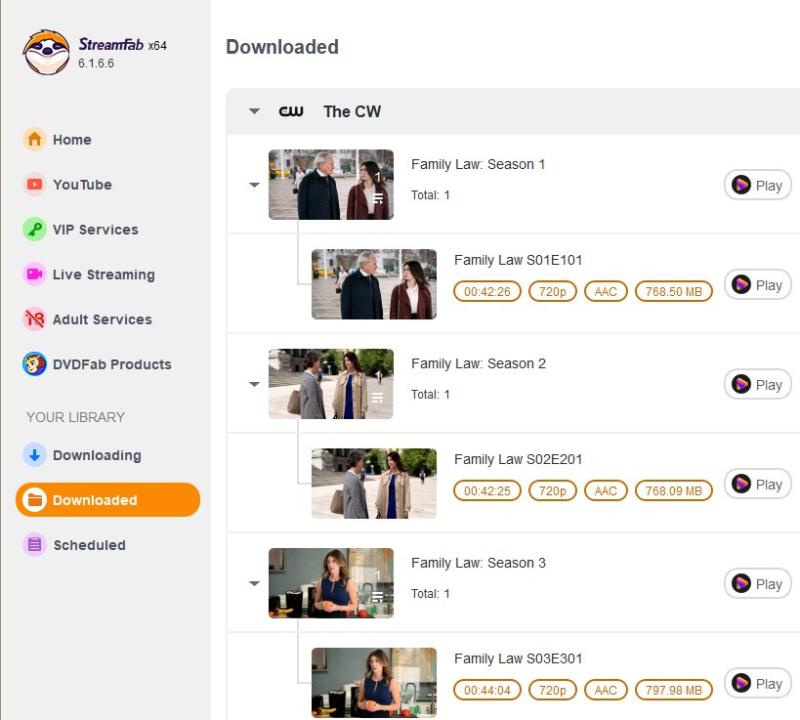 By the way, I downloaded Season 3, Ep. 1-5 of Family Law just now, using all but TubeDigger of the above four. TubeDigger was acting weird and wanted to record rather than download. Once in a rare while, it wants to do that for some unknown reason.