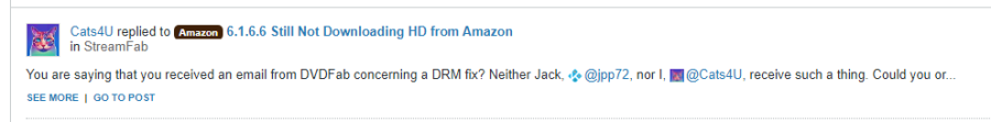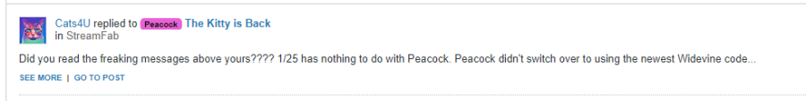 The first item you mentioned..... He's just answering a question that I asked regarding why the most current update was even released..... and his answer I'm sure was the manifestation of numerous frustrations caused by StreamFab management..... who at the bare minimum..... should at least have the professional courtesy..... to inform the moderators of actions prior to their undertaking instead of leaving them twisting in the wind..... so if you want to be upset with someone about that "To totally annoy me and Jack?" remark..... be upset with me because I was the catalyst..... Although if I were worried about you or anyone else getting upset..... I wouldn't have asked the question.....