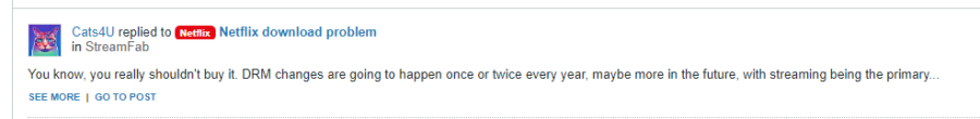 It's not just this post from him. The constant annoyance has been going on since the DRM change, which was on 25.01. Every day, I have to read the flaming from this moderator. There are hardly any situations where he actively helps someone solve a problem that might not be DRM-related. If it's about DRM again, his flaming starts all over again.