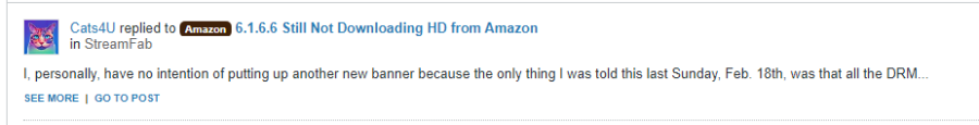 But this is the bottom line..... Any criticism he's made..... is exactly how things are..... It would be completely different if the remarks were untrue..... but unfortunately for the Users..... they're spot on..... StreamFab is in trouble..... and in my humble opinion..... without the guy you want to run out of town on a rail..... along with the efforts of his partner..... the situation would be much worse..... so you really should consider giving this a rest!.....