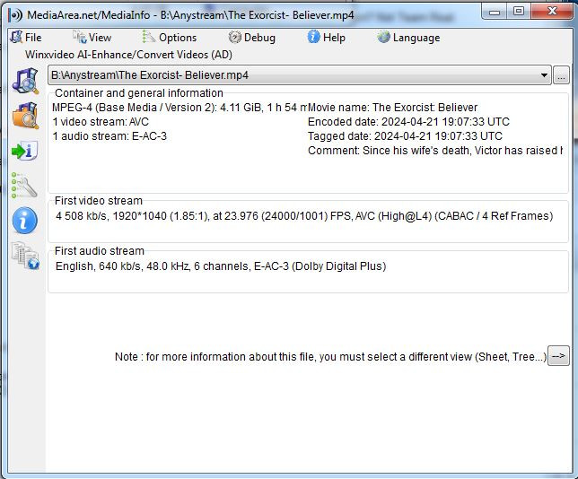 Title: The Exorcist: Believer, 2023, 1 hour 54 minutes, 1920X1040, 15000Kb/s, EAC3 5.1 chosen, no subtitles