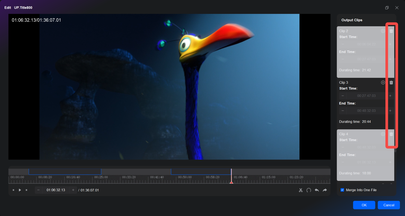 - I made sure to cut, not merge the files and delete the first clip as I do not want to keep it.