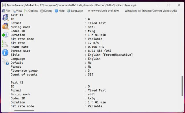 Also keep in mind that many players do not respect the "Forced" and "Default" flags if set on subtitles embedded in MP4 files, meaning even if a subtitle track is flagged as default or forced (in MediaInfo, use the View Pull down and select TEXT, you'll see more details about the subs) you will still have to toggle them on and select the subtitles you want. This is appears to be a MP4 limit.