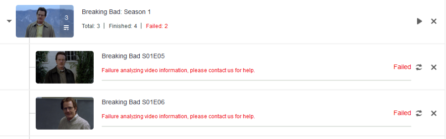 If I select a title with HEVC H265, then it will download the entire season or series without issue.