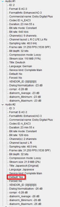 Click to the left of the audio track to make it the default audio track. An orange triangle will appear to show that this is the default track.
